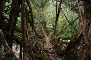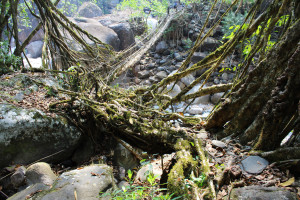 So far, I haven’t found any evidence of living root bridges, or other forms of botanical architecture, west of the Umiam Basin, though there seems to me no reason why there couldn’t be. Any information on living root bridges west of Mawsynram would be appreciated.