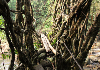 Many living root bridges that fall are replaced by conventional structures which occur at roughly the same place where the root bridge once existed.